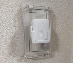 壁スイッチ上に設置してON/OFFを制御できるようにしています。